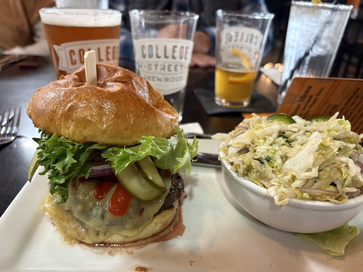The atmosphere at College Street Brewhouse & Pub strikes a perfect balance between laid-back and lively. With ample seating options both indoors and out, you can choose to enjoy a breezy meal on the patio or soak in the energetic buzz inside. It’s not uncommon to find a spirited crowd gathered, whether they’re laughing over beers or enjoying a meal with friends. The interior, described by patrons as modern and cool, offers a welcoming ambiance that complements the service—widely praised for being attentive and friendly.